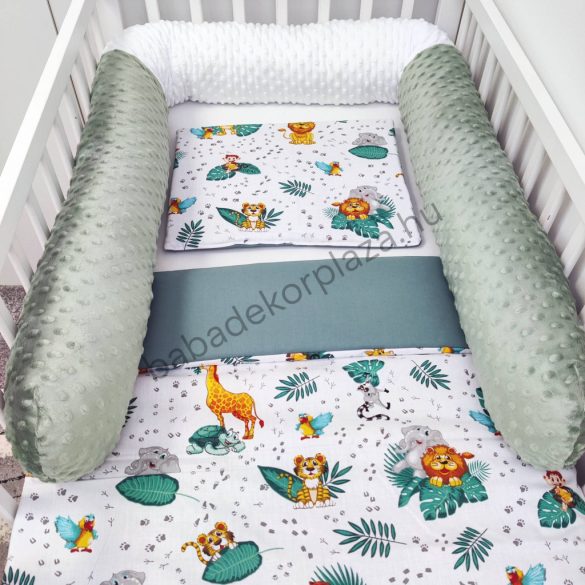 4 részes babaágynemű garnitúra puha, bababarát 100% pamut és pihe-puha Minky anyagból.