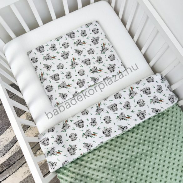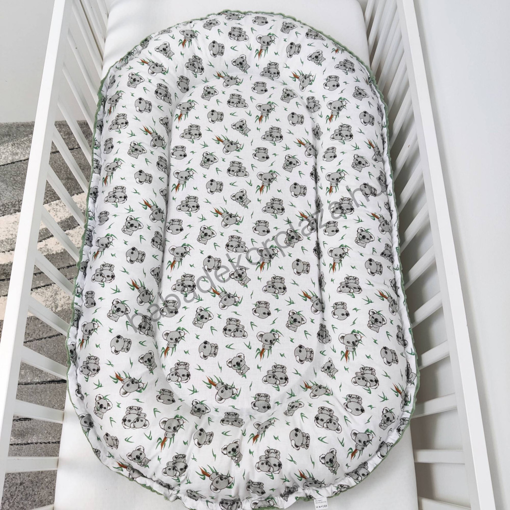 Deluxe Baby babaágynemű garnitúra babafészekkel - 5 részes - sötét zsályazöld - koalák II.
