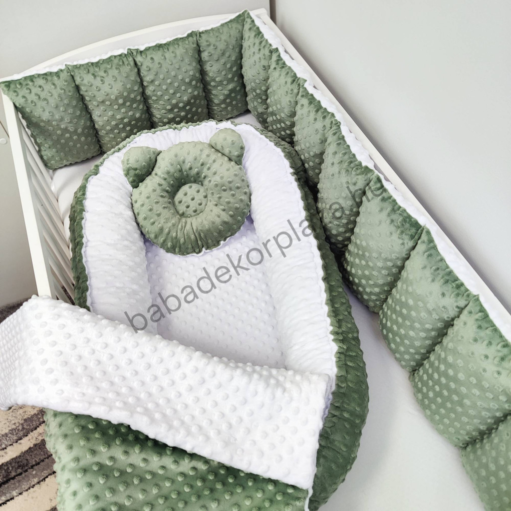 Deluxe Baby babaágynemű garnitúra babafészekkel, Extra párnás rácsvédővel - Minky - VÁLASZTHATÓ SZÍNBEN