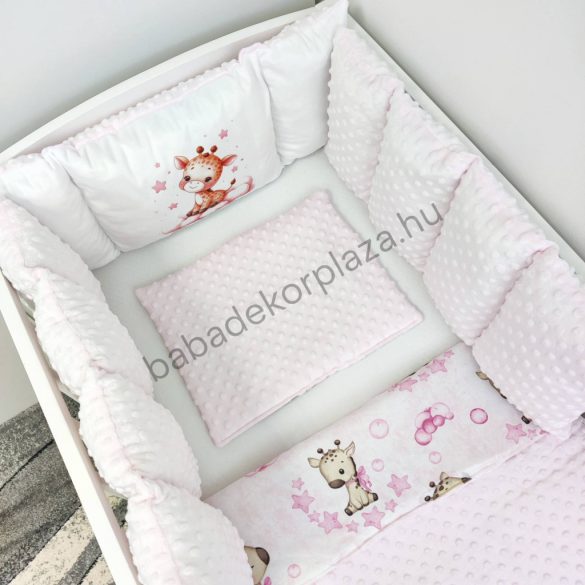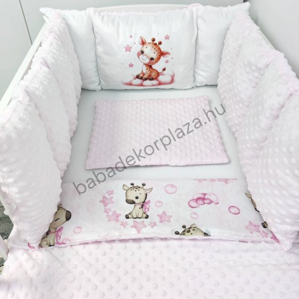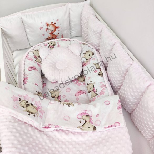 Deluxe Baby babaágynemű garnitúra babafészekkel, Extra párnás rácsvédővel - Dreamland Collection - rózsaszín bébi zsiráf