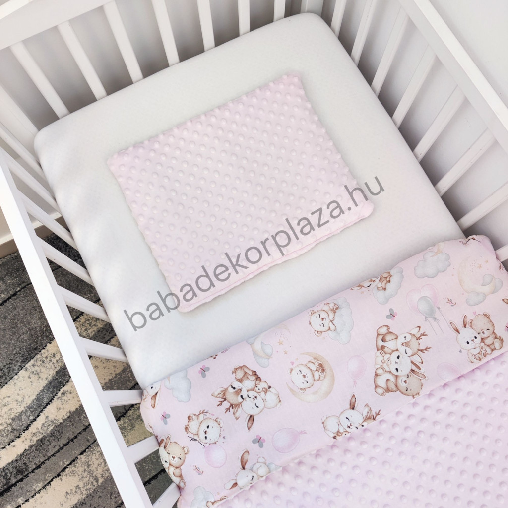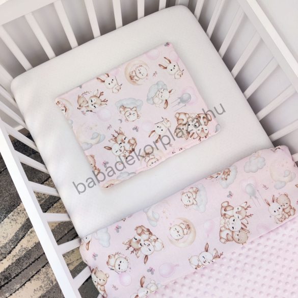 Deluxe Baby babaágynemű garnitúra felhőpárnás rácsvédővel - fehér - szürke - világos rózsaszín - bébi erdei állatok