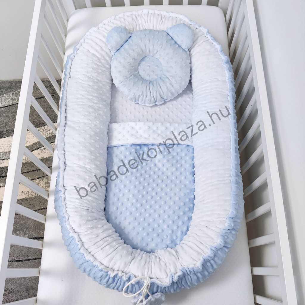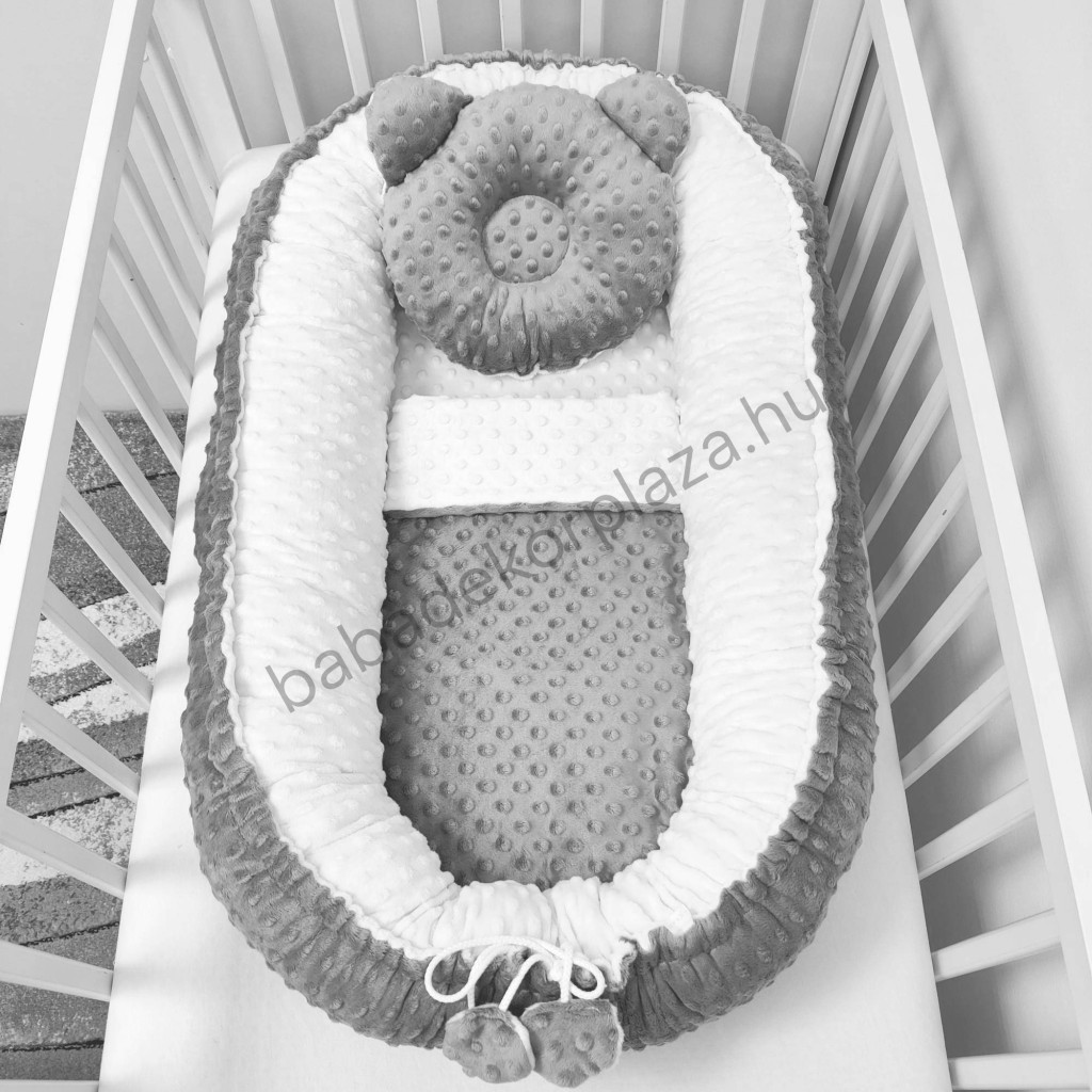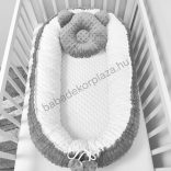 Többfunkciós babafészkünk - különleges formájának köszönhetően - rendkívül praktikusan kihasználható: az első időszakban összekötve babafészekként használható, később szétnyitva játszószőnyegként vagy hempergőként is funkcionál.