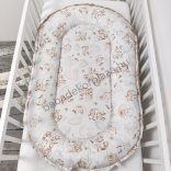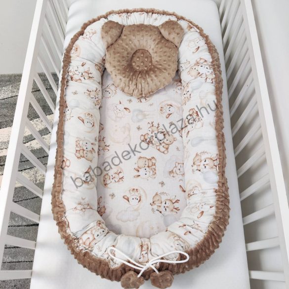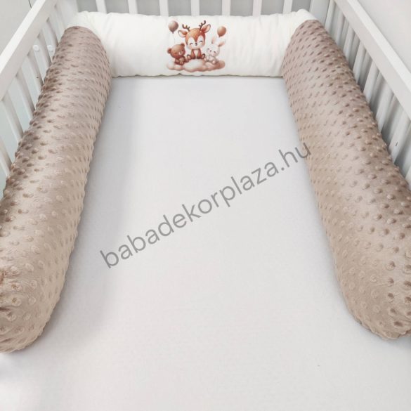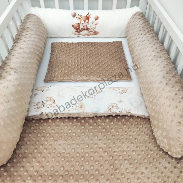 Deluxe Baby babaágynemű garnitúra babafészekkel, hengerpárnás rácsvédővel - cappuccino bébi erdei állatok