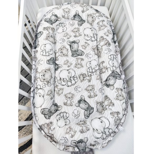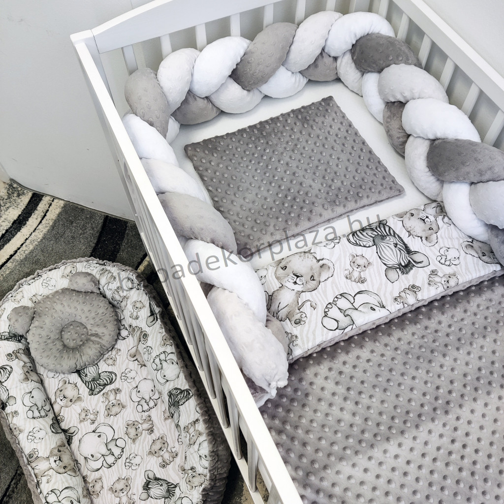 Deluxe Baby babaágynemű garnitúra babafészekkel - 5 részes - grafitszürke - bébi szafari I.