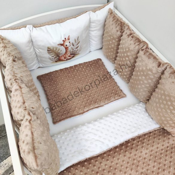 Deluxe Baby Minky babaágynemű garnitúra Extra párnás rácsvédővel - Dreamland Collection - cappuccino szavanna zsiráf