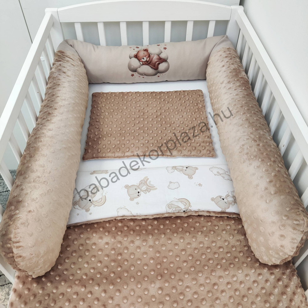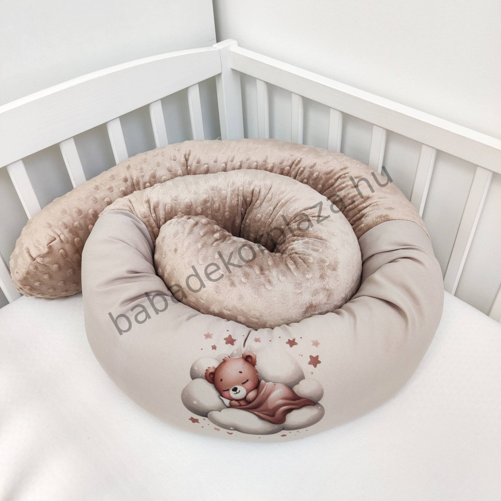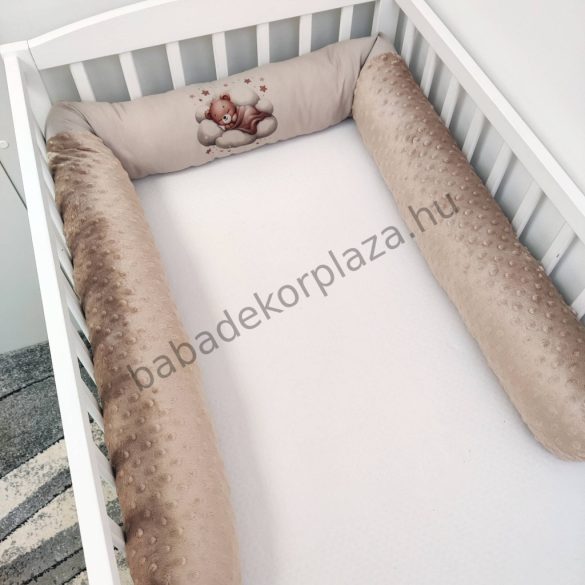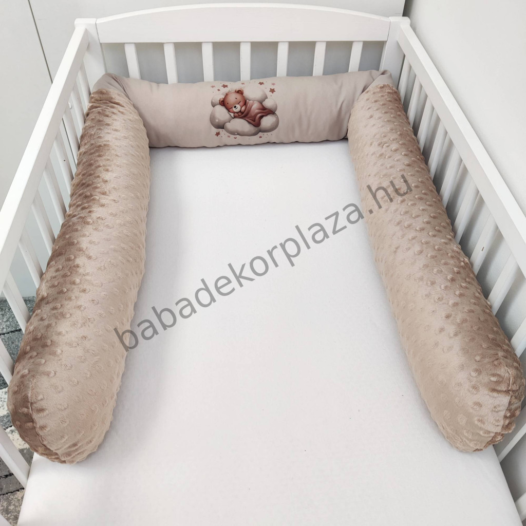 Hengerpárnás rácsvédő extra puha minőségi, bababarát Minky és vidám mintás anyagból.