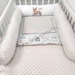 Hengerpárnás rácsvédő extra puha minőségi, bababarát Minky és vidám mintás anyagból.
