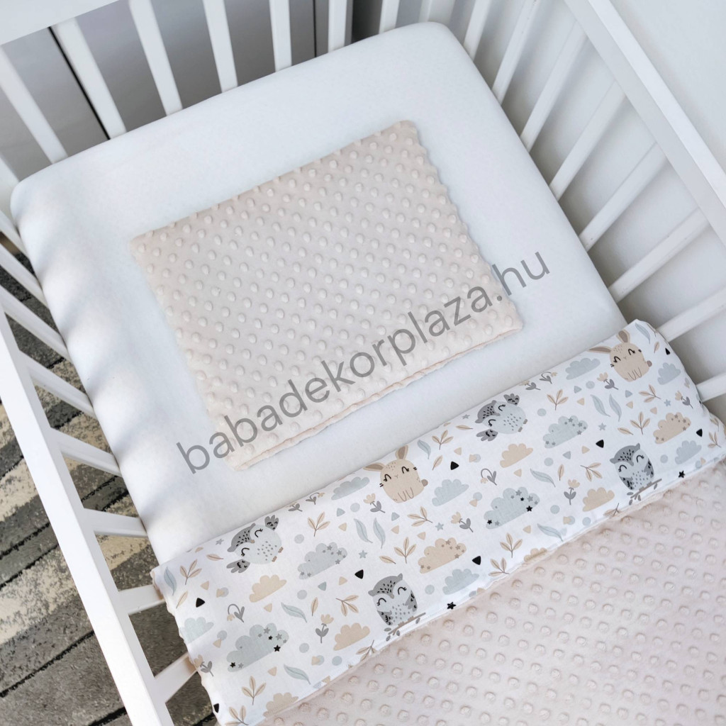 - Anyaga: egyik oldala 100% pamut, másik oldala pihe-puha Minky (100% poliészter); töltet: poliészter