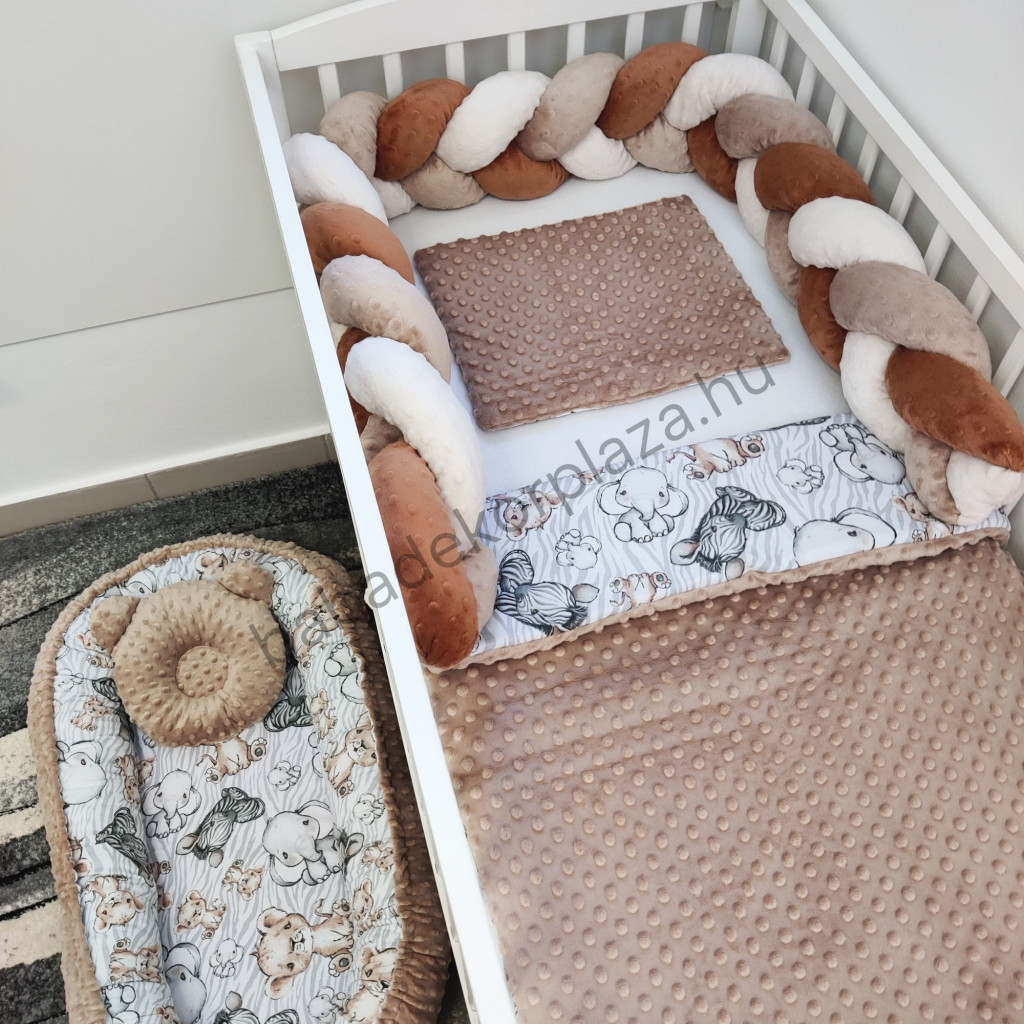 Deluxe Baby babaágynemű garnitúra babafészekkel - 5 részes - cappuccino - bébi szafari I.