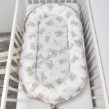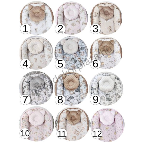 Többfunkciós babafészkünk - különleges formájának köszönhetően - rendkívül praktikusan kihasználható: az első időszakban összekötve babafészekként használható, később szétnyitva játszószőnyegként vagy hempergőként is funkcionál.
