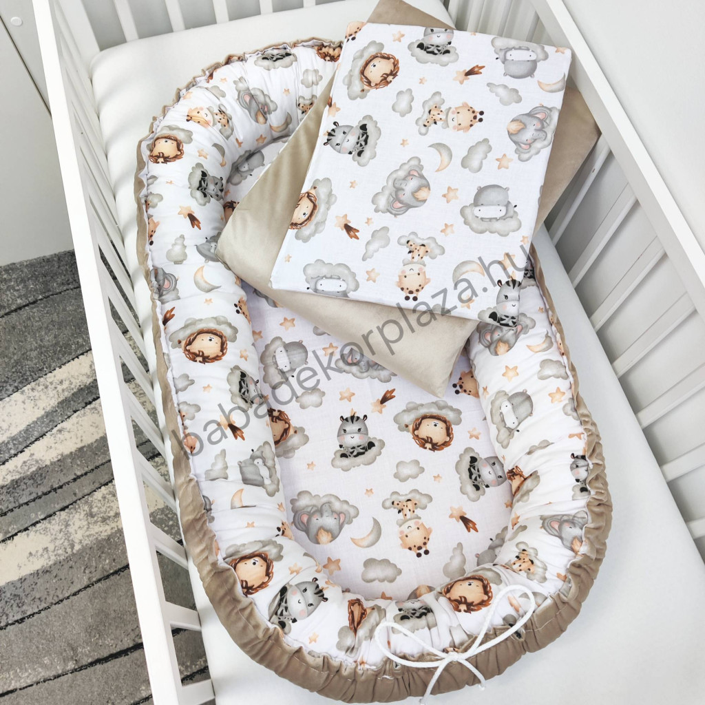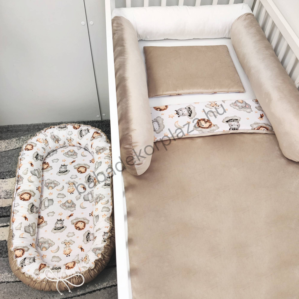 Babaágynemű garnitúra babafészekkel, hengerpárnával - 4 részes - Vidám szafari II. (Limitált széria)
