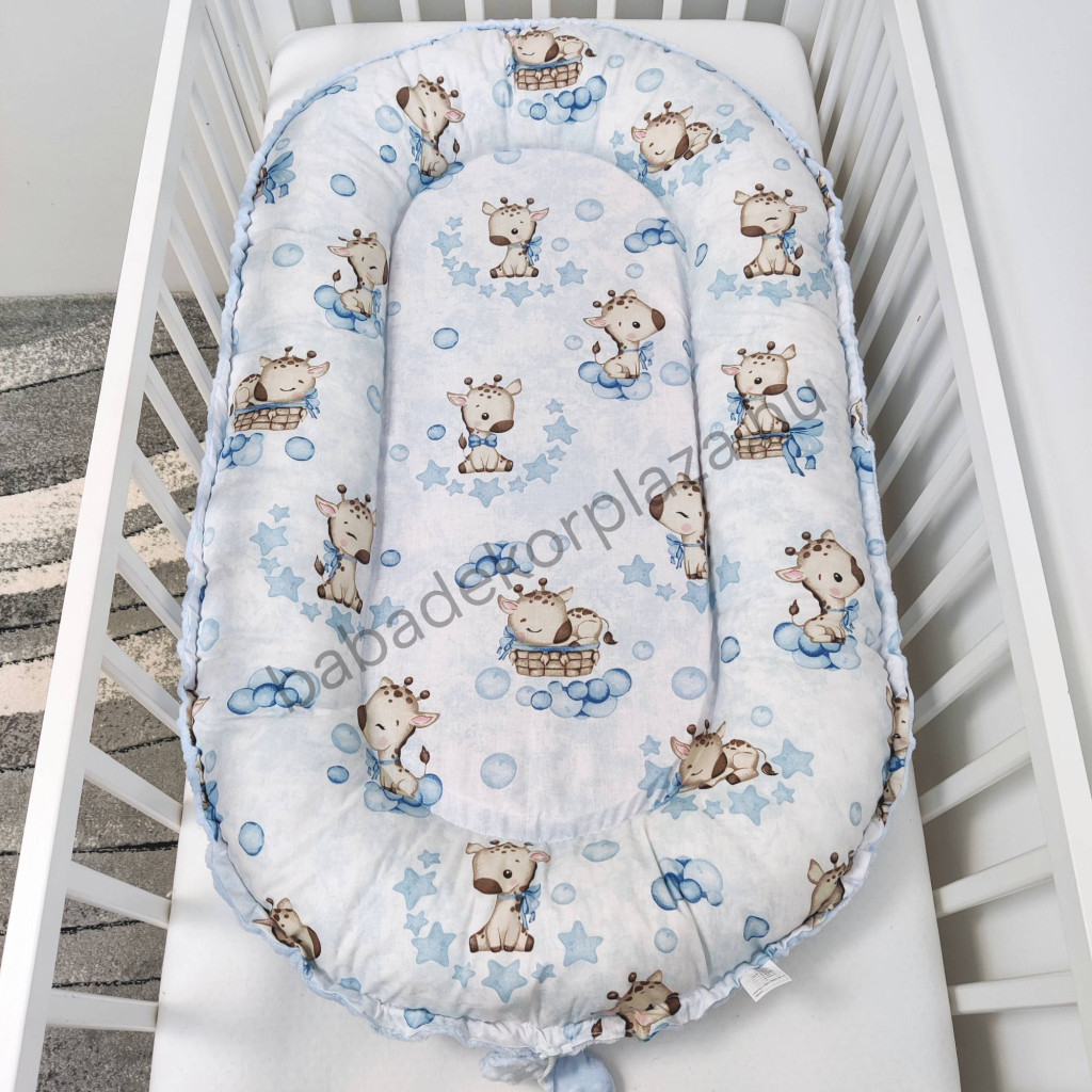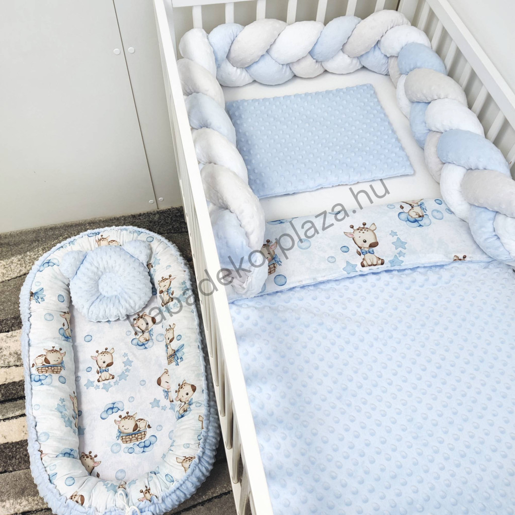 Deluxe Baby babaágynemű garnitúra babafészekkel - 5 részes - világoskék - bébi zsiráf