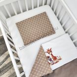 Deluxe Baby 3 részes babaágynemű garnitúra - takaró + párna + fonott rácsvédő - csoki - zebra és zsiráf