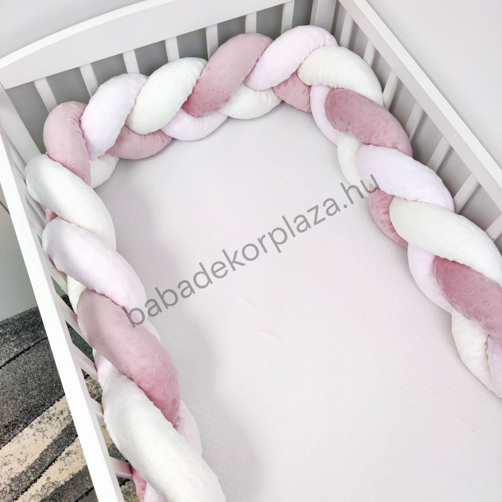 Fonott rácsvédő 70*140-es kiságyban körbeérő - Minky tricolor (mályvarózsa - világos rózsaszín - vanília)