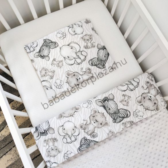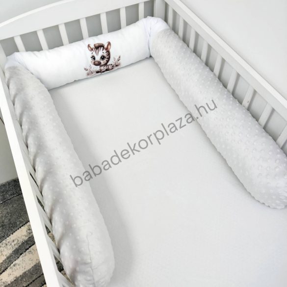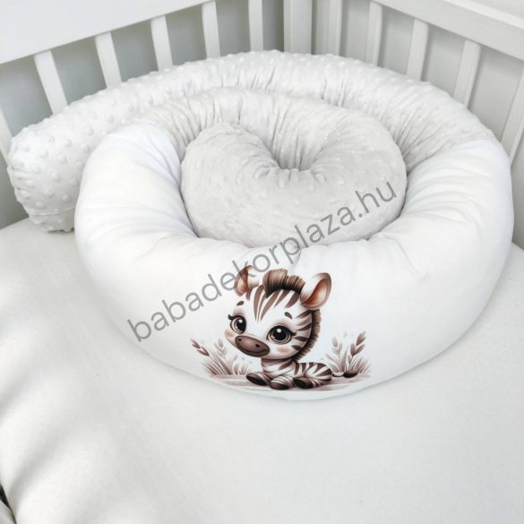 Deluxe Baby babaágynemű garnitúra babafészekkel, hengerpárnás rácsvédővel - szürke - bébi szafari zebra