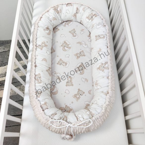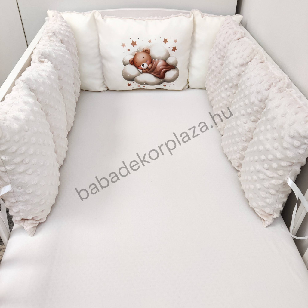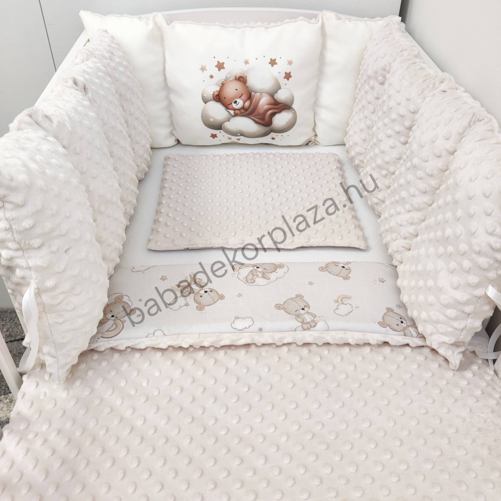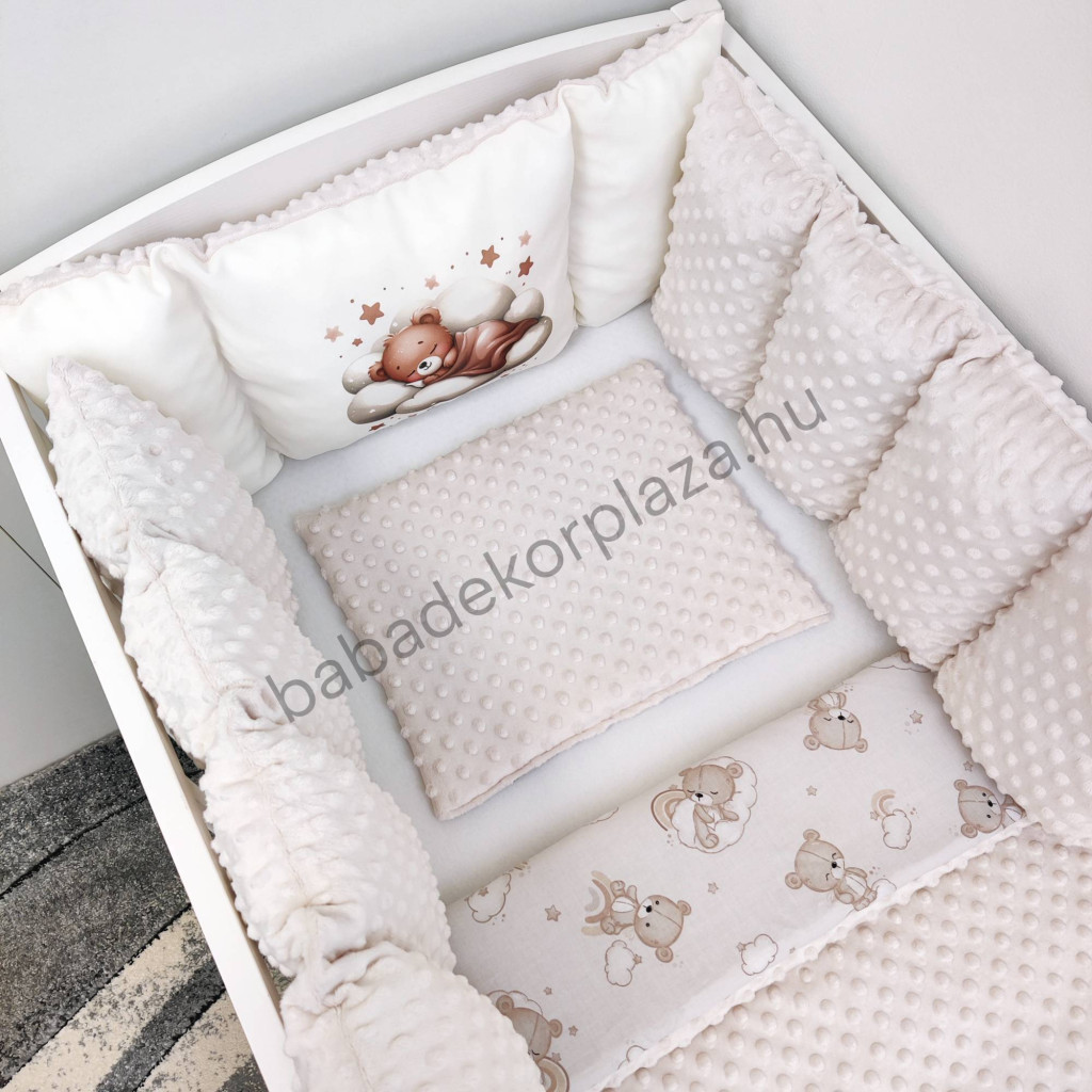 Deluxe Baby babaágynemű garnitúra babafészekkel, Extra párnás rácsvédővel - Dreamland Collection - mogyoró alvó maci