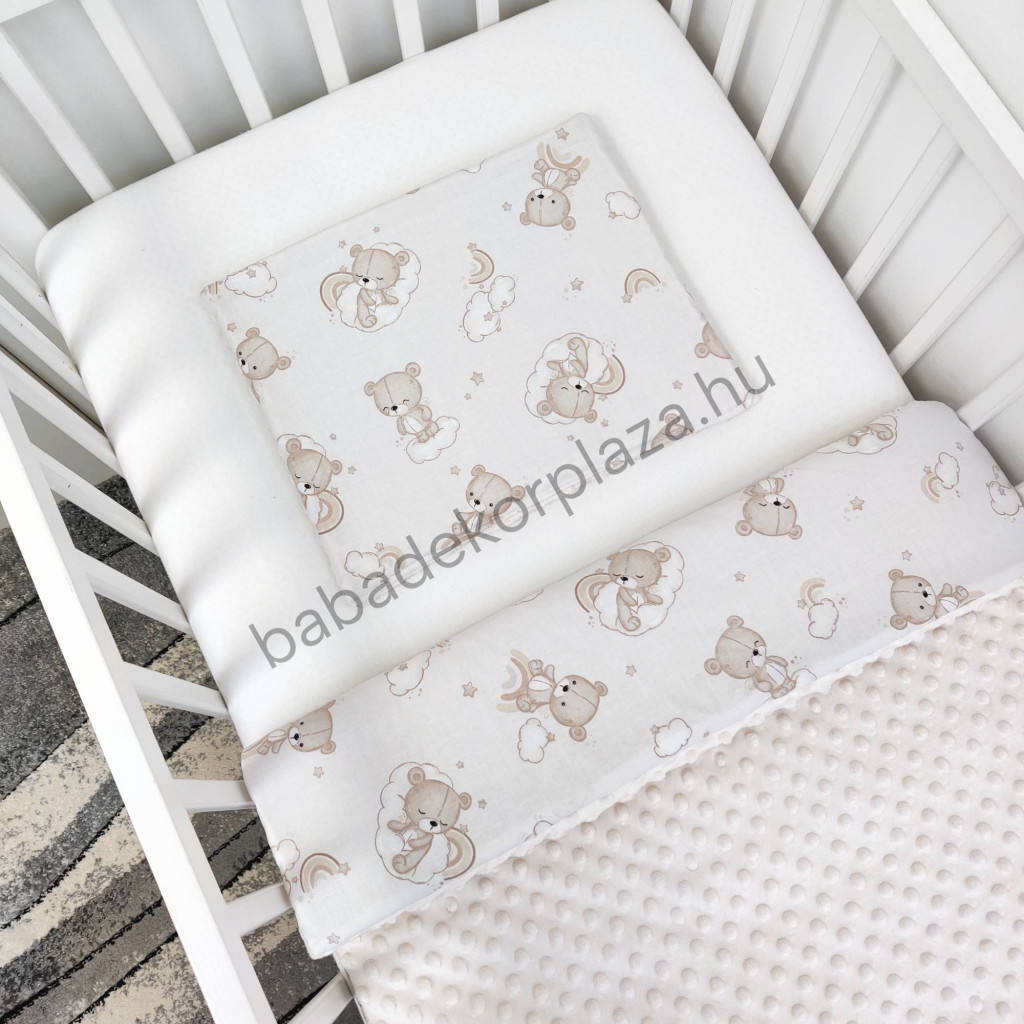 - Anyaga: egyik oldala 100% pamut, másik oldala pihe-puha Minky (100% poliészter); töltet: poliészter