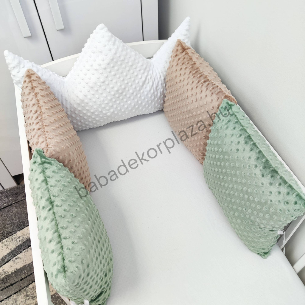 Deluxe Baby babaágynemű garnitúra koronapárnás rácsvédővel - fehér - cappuccino - sötét zsályazöld